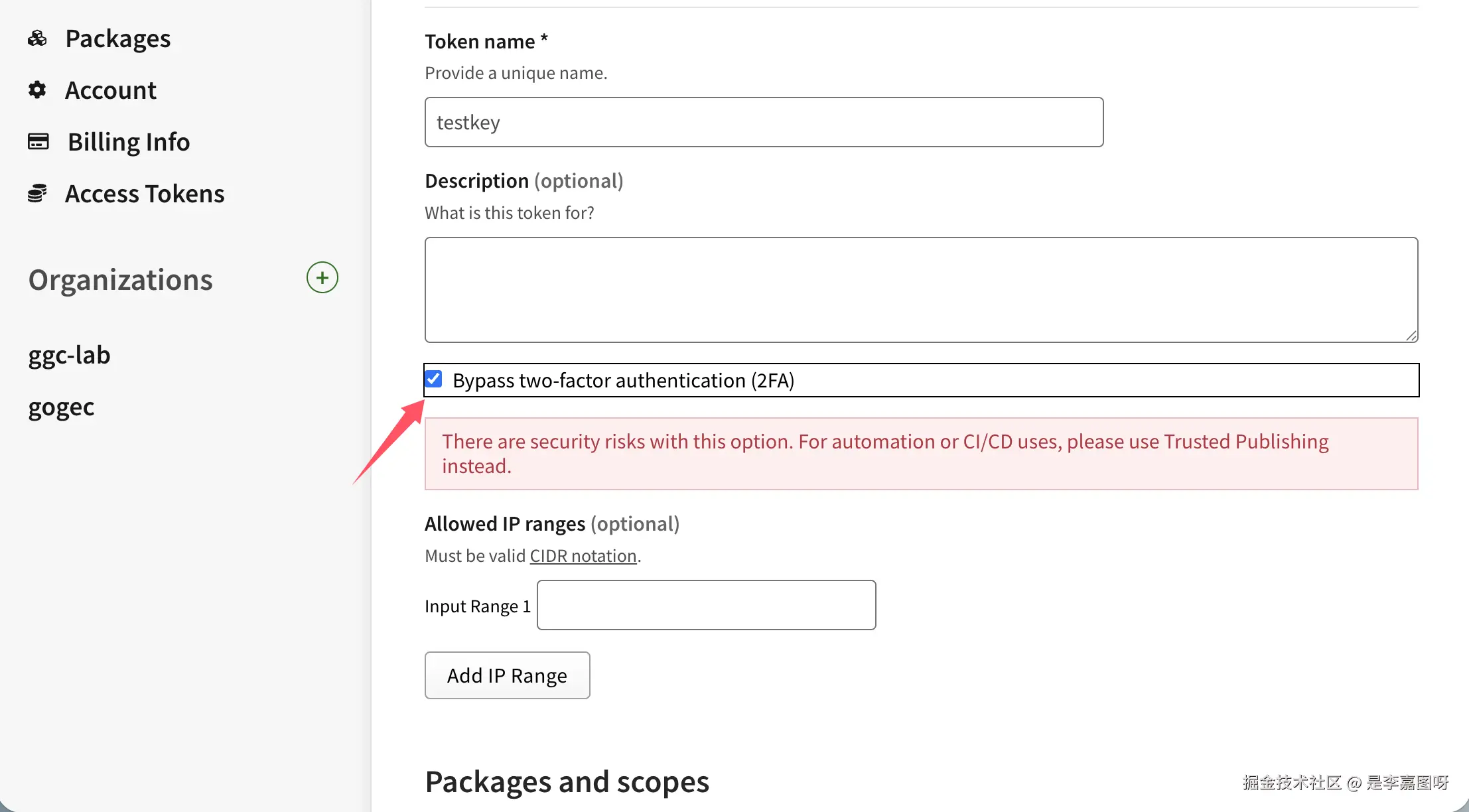 在 npm 官网创建 Granular Access Token