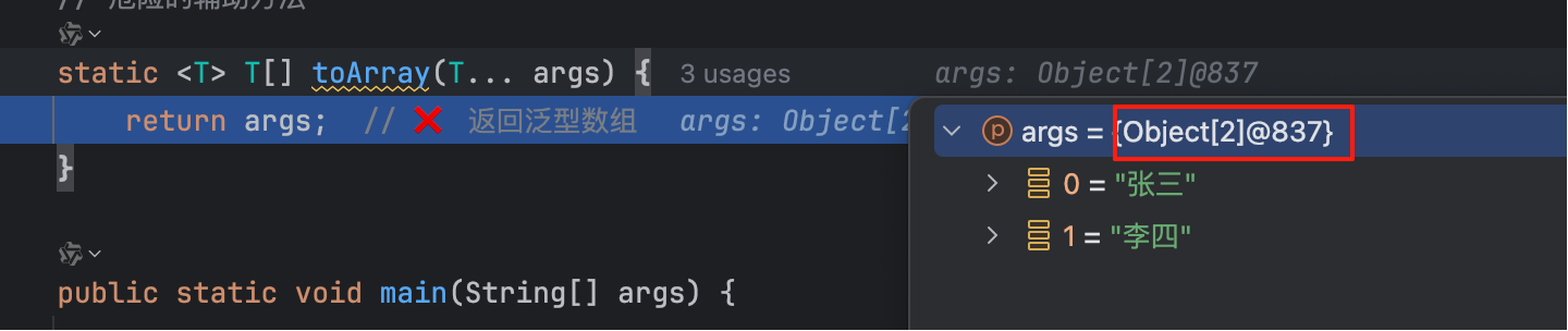 String[] two2 = pickTwoUnsafe("张三", "李四", "王五");