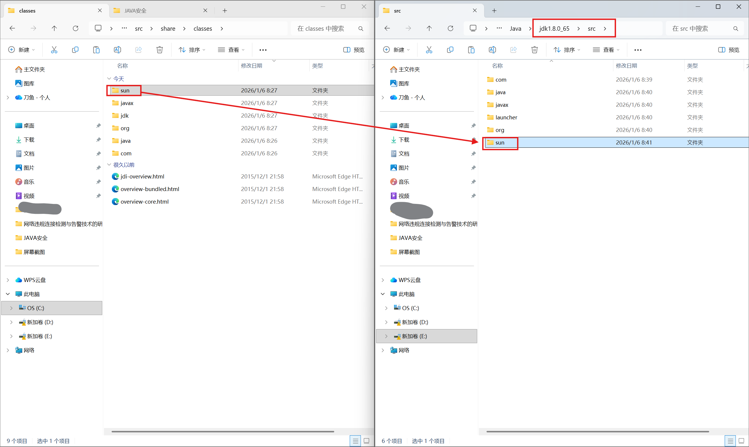 将下载的openjdk里 /share/classes/ 里面的 sun包 复制到 jdk1.8.0_65/src(需手动解压src.zip)里