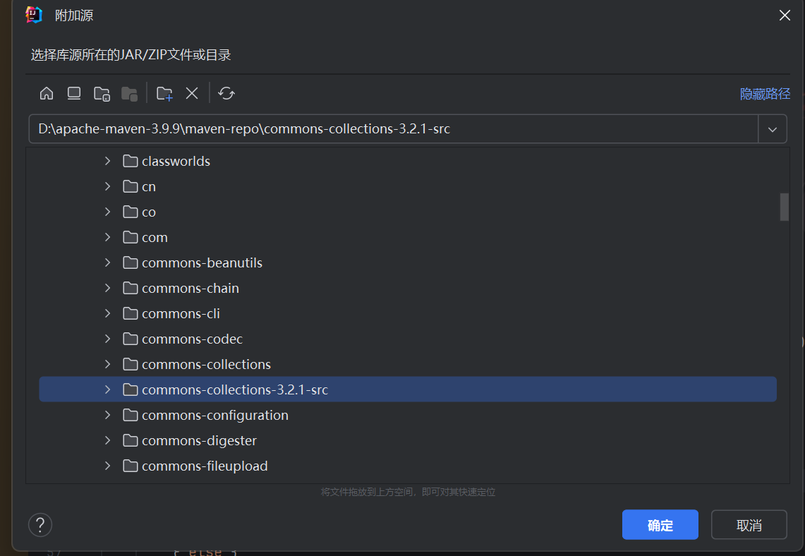 来到项目,左边随便选择一个commons-collections库的文件,点击右上角的选择源