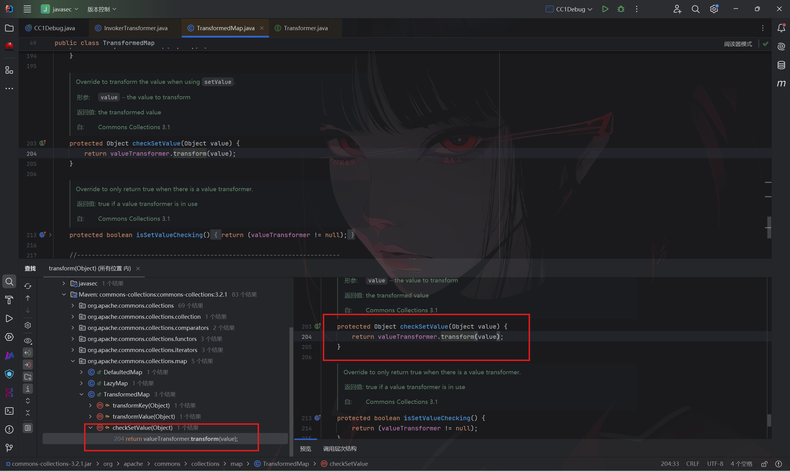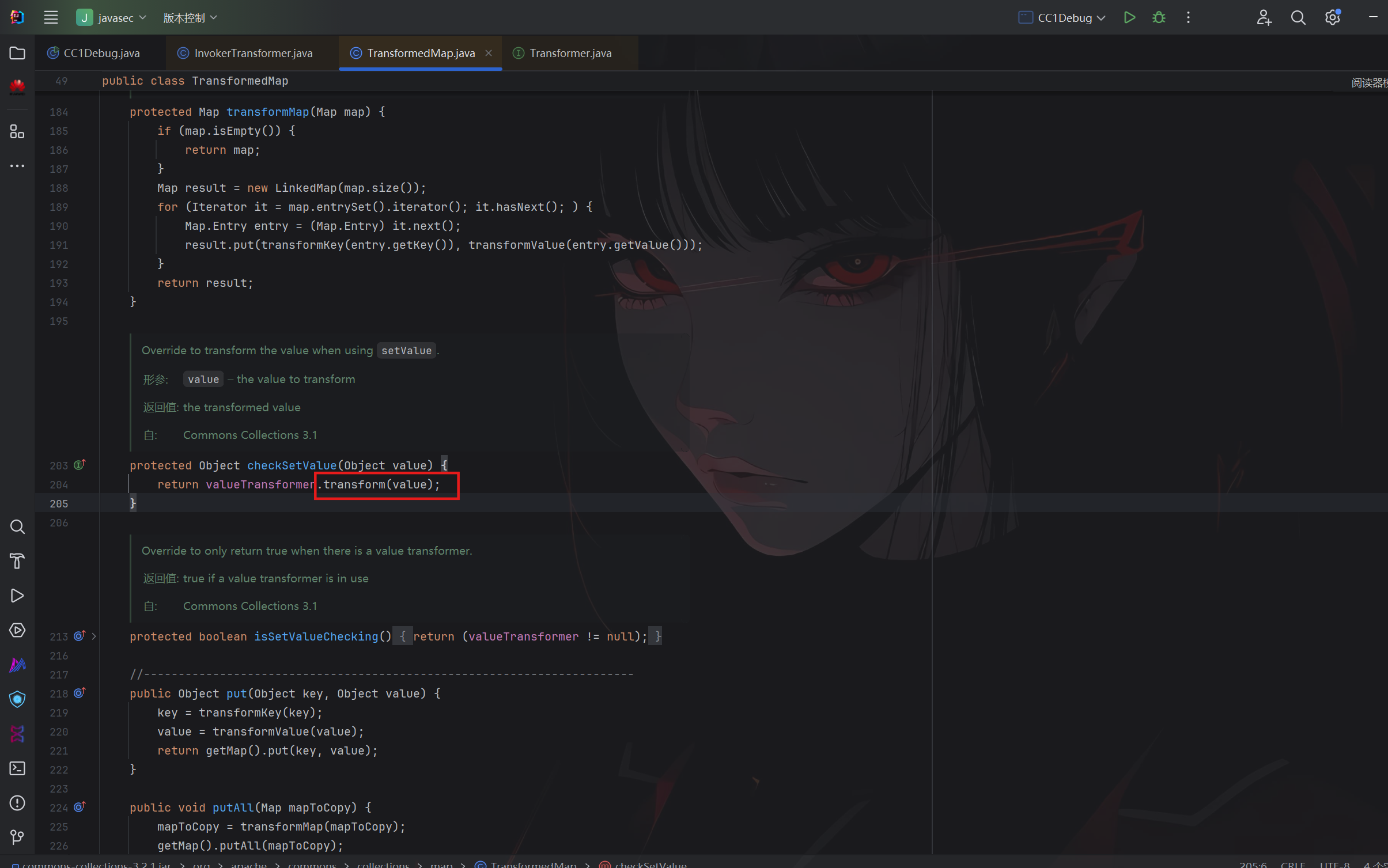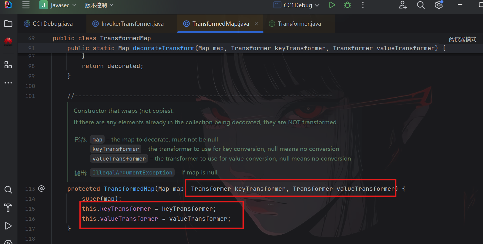 Map<Object,Object> transformedMap = TransformedMap.decorate(hashMap,null, invokerTransformer);