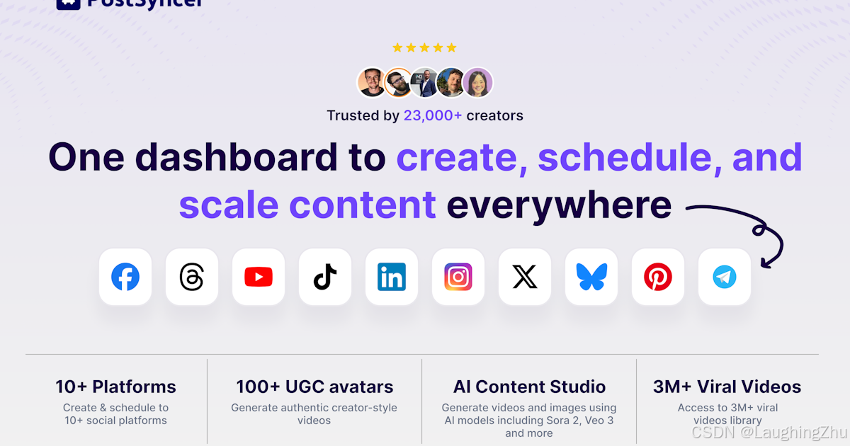 介绍:一款强大的工具,让你轻松管理所有社交账号。可以在10多个平台上创建内容、安排发布时间以及回复评论。你还可以从热门内容库中获取灵感,使用AI(如Sora、Veo等)生成媒体素材,连接无限个账户,并在专门的工作区中管理客户。