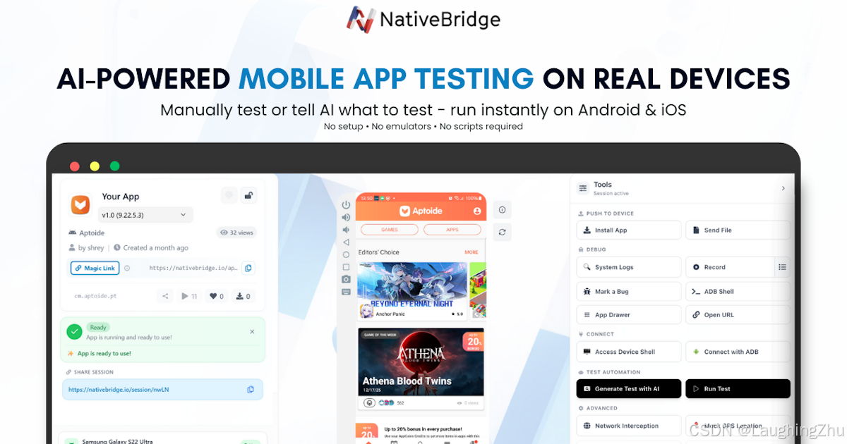 关键词:NativeBridge, 移动测试, 实际设备, AI驱动, 魔法链接, iOS, Android, 崩溃捕捉, 错误报告, 测试自动化
