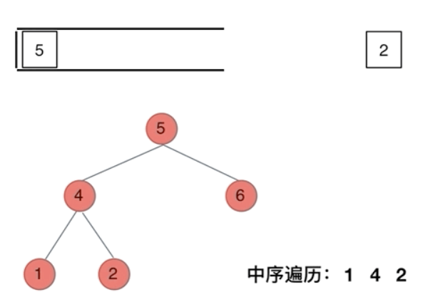 stack:存储已经经过但还未处理的节点(等待处理自身和右子树)