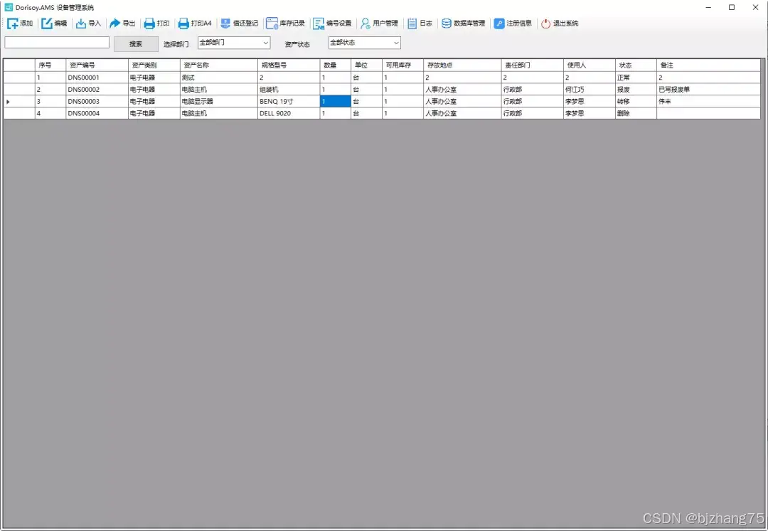 Dorisoy.AMS是一款专业的企业/机构资产管理解决方案。该系统采用现代化的C# WinForm框架,提供全面的资产生命周期管理功能,包括资产的增删改查、批量导入导出、权限管理、操作日志审计、数据备份恢复等。