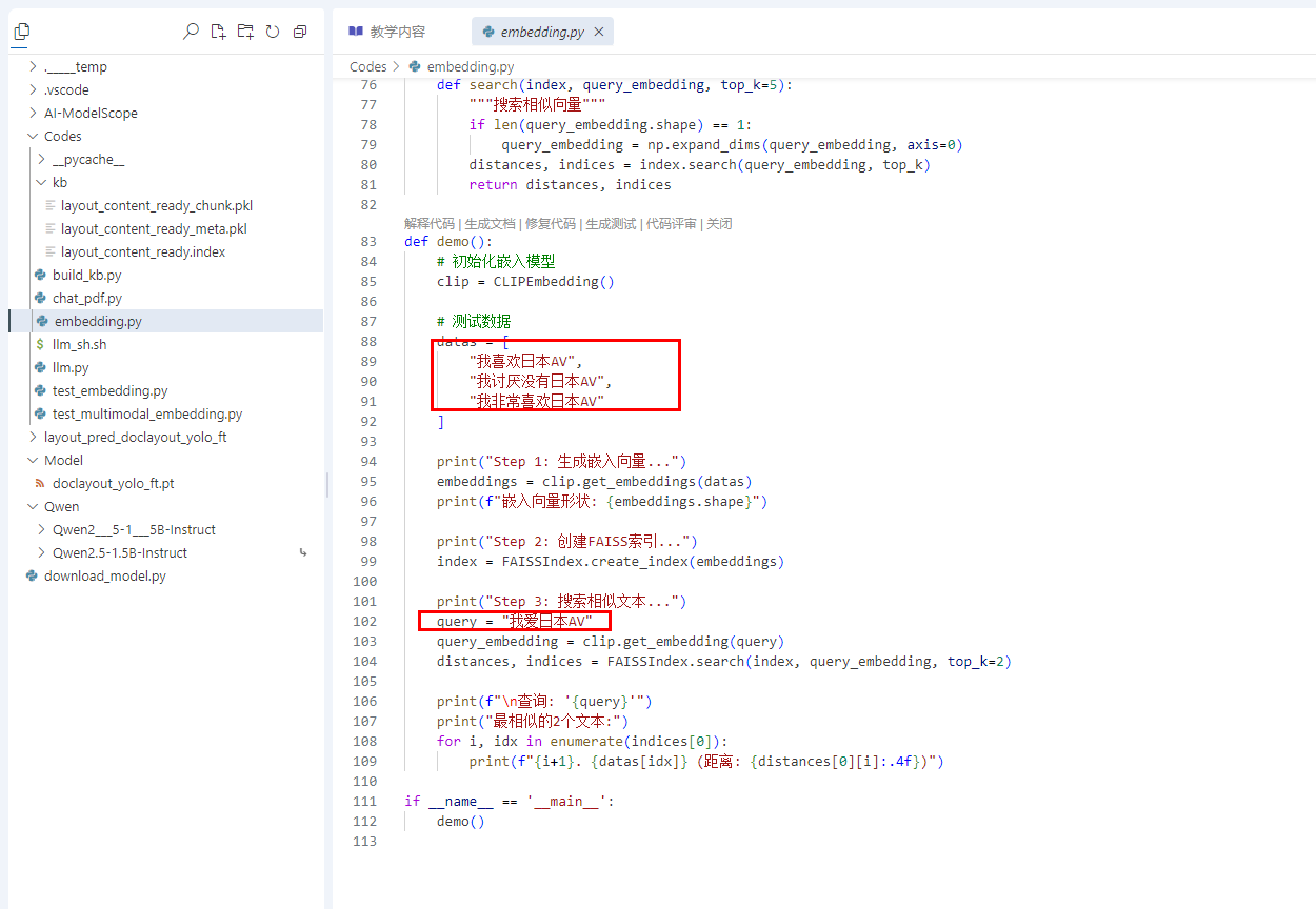 脚本 test_embedding.py 的作用是加载 m3e-embedding-small 模型,对输入数据进行处理并生成对应的向量。