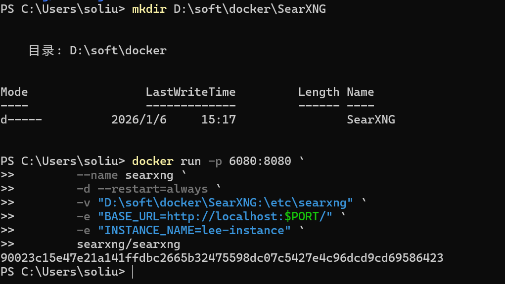 mkdir D:\soft\docker\SearXNG