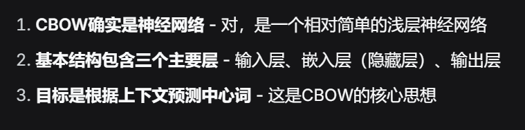 二. CBOW 词嵌入模型原理(核心是 "用上下文预测目标词")