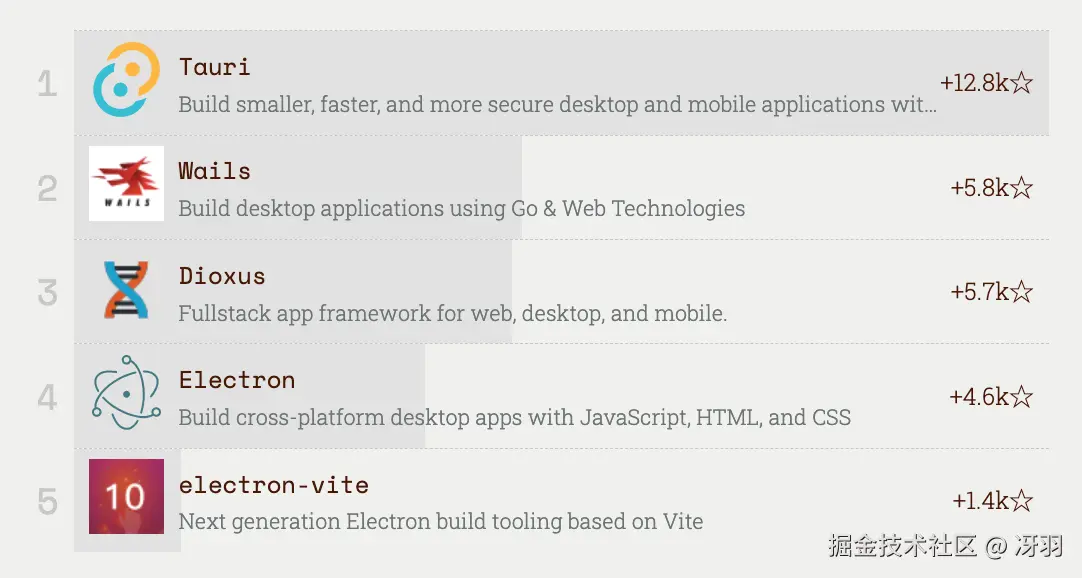 但它们并非唯一撼动 React Native 霸主地位的新兴框架。排名第四的 Dioxus 是一个雄心勃勃的框架,旨在基于 Web 技术打造"更优秀的 Flutter ",但又无需功能齐全的 Web 视图。