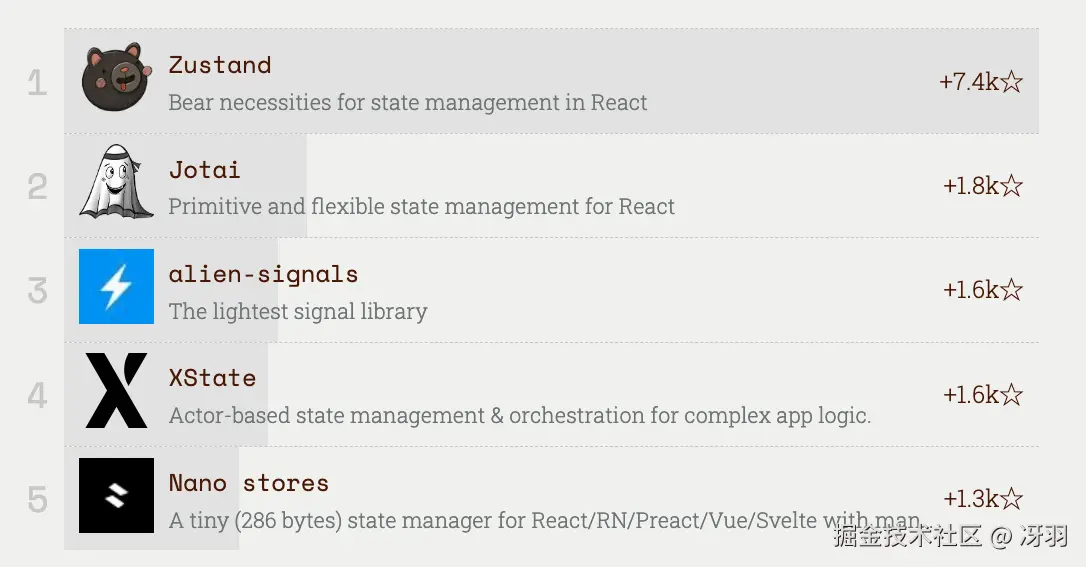 Svelte 连续第三年位列第三。Svelte 5 的 Runes 响应式系统( <math xmlns="http://www.w3.org/1998/Math/MathML"> s t a t e 、 state、 </math>state、derived、$effect)已成为状态管理的标准方式。