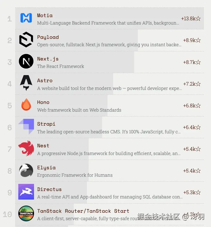接下来的 4 个项目与 2024 年相同,只是 Hono 和 Astro 的位置互换了。