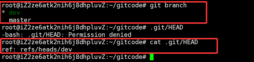 创建新的分⽀后,Git 新建了⼀个指针叫 dev, * 表⽰当前 HEAD 指向的分⽀是 master 分⽀