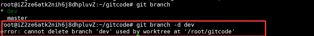 如果当前正处于某分⽀下,就不能删除当前分⽀