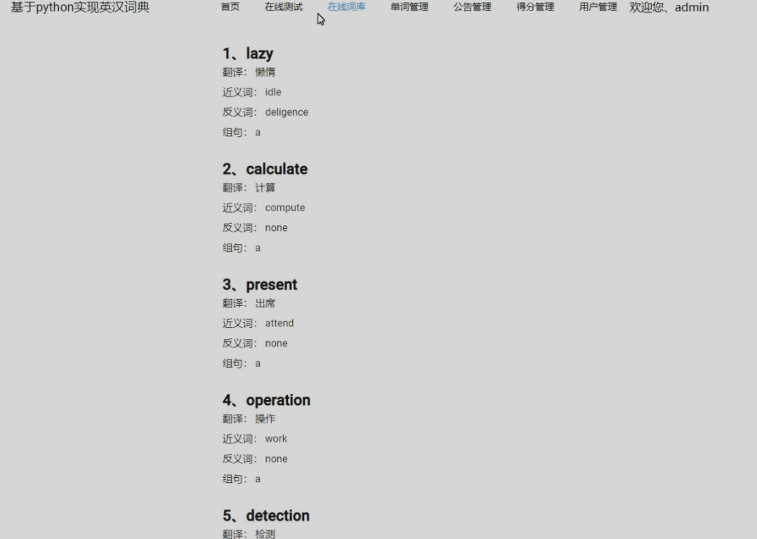 (3)单词管理,管理员能够添加新的单词信息,并且对已经存在的单词进行相应的内容维护操作。
