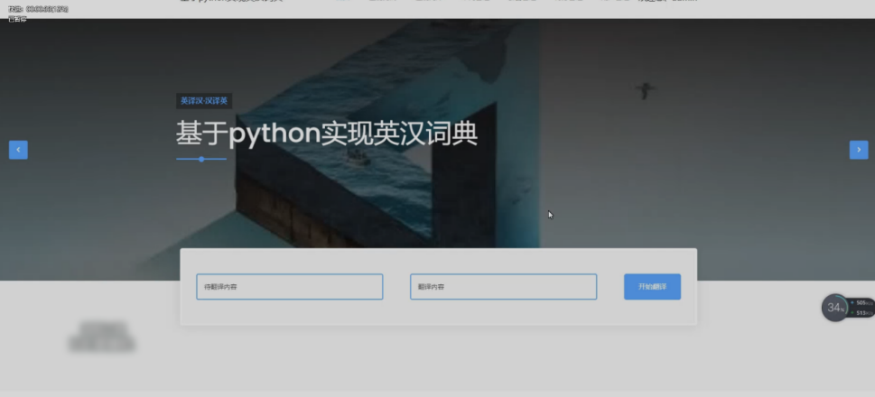 在使用用户登录到系统的首页面之后,其首页面的主要窗口中显示了此次开发的系统主题"基于python实现英汉词典",在页面的最上方为菜单栏,菜单栏中有在线测试、在线词库、单词管理以及公告管理等多项内容。在页面的最中间为两个文本框,可以直接输入英文、中文单词进行翻译。