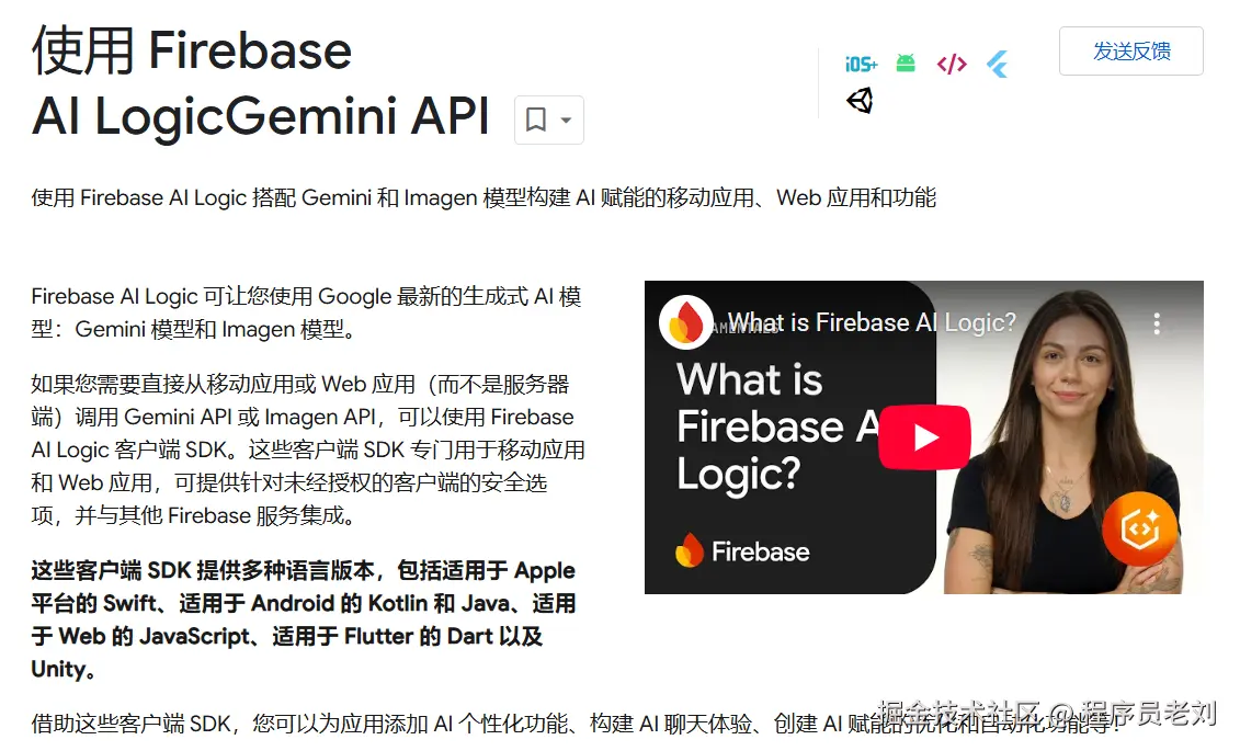 Google 官方推出了 google_generative_ai 插件(目前已整合到Firebase中),让 Flutter 开发者能以极低的门槛接入 Gemini 大模型。