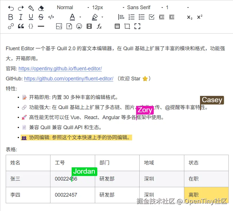 你可以在我们的演示项目中进行体验:opentiny.github.io/tiny-editor...