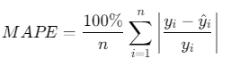 mape = 100 * mean(abs((y_true - y_pred)./safe_denominator));