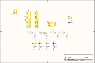 LED状态指示电路,4个LED分别接至Arduino的数字引脚4,5,6,7,在发送端本地显示当前按钮对应的LED状态。