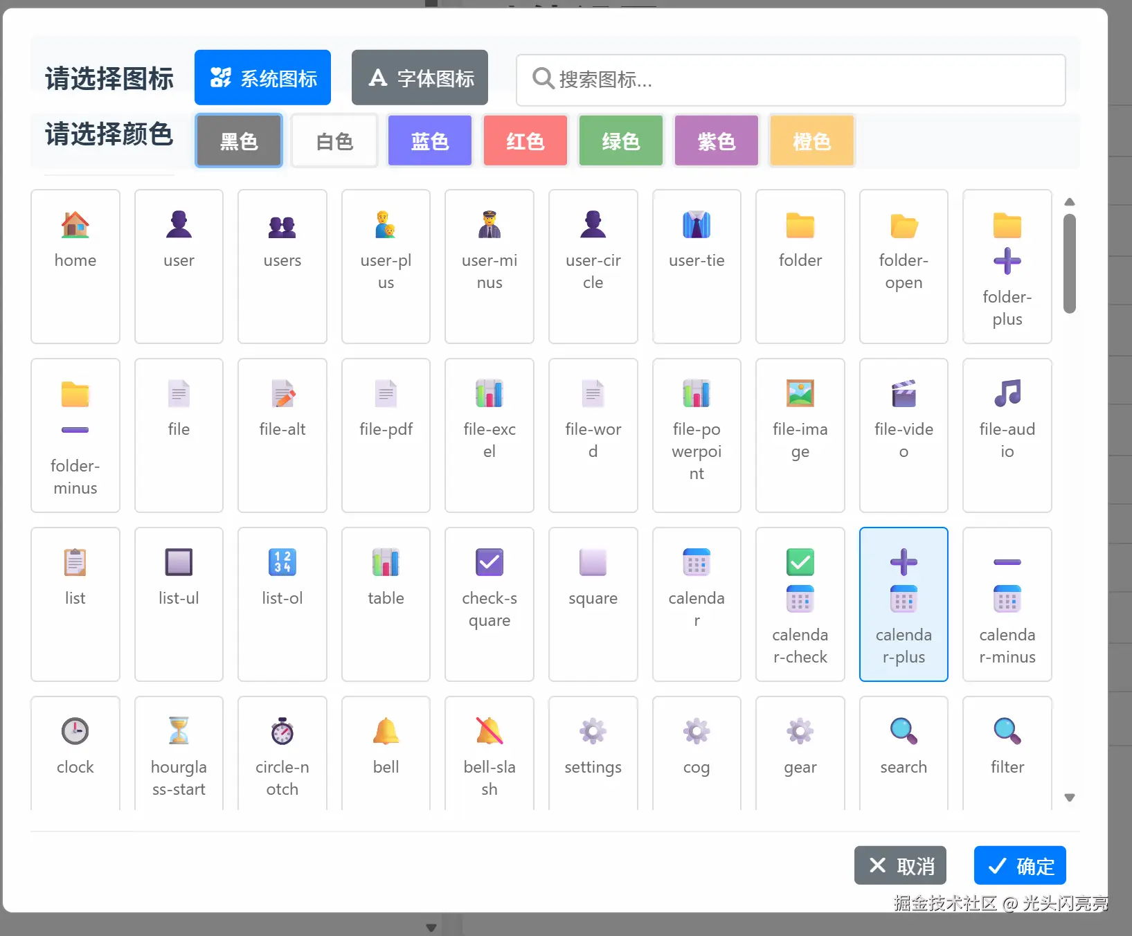 - 图标搜索过滤:提供搜索功能,根据图标名称快速过滤显示结果
