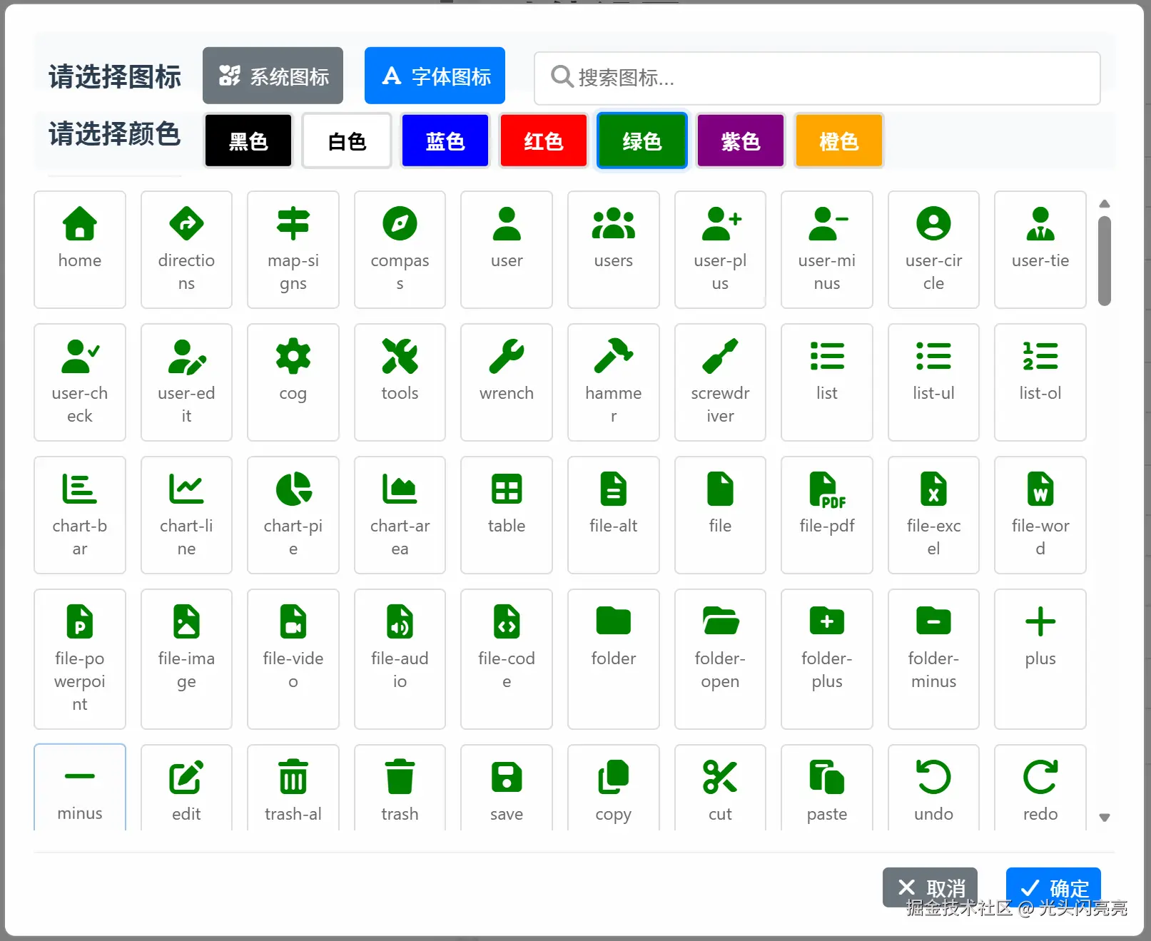 <button class="btn btn-primary" @click="confirmIconSelection"><i class="fas fa-check"></i> 确定</button>