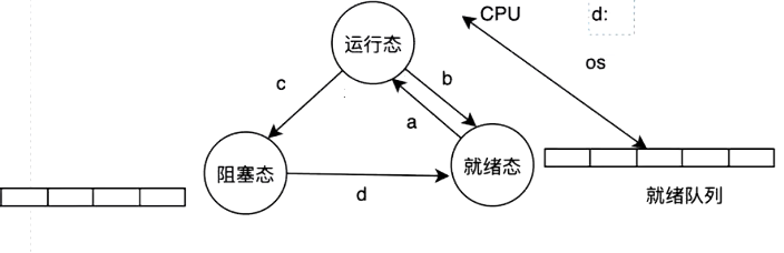 所谓的就绪态就是一个就绪队列(由OS内核维护),和CPU交互就靠就绪队列,即:CPU和就绪队列之间实现了通信(OS中的代码可以实现:CPU从就绪队列中取东西,也可以把CPU中正在运行的东西放到就绪队列中)