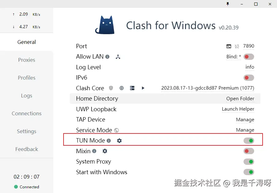 - 打在你的代理工具中,将 Tun Mode 打开