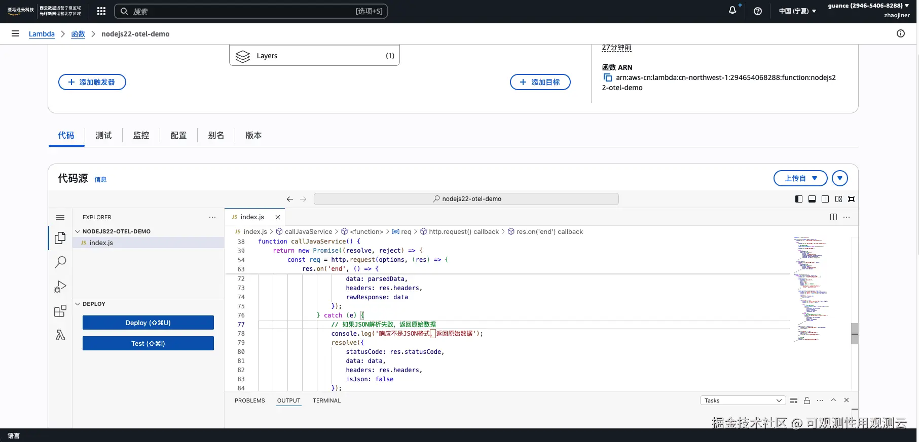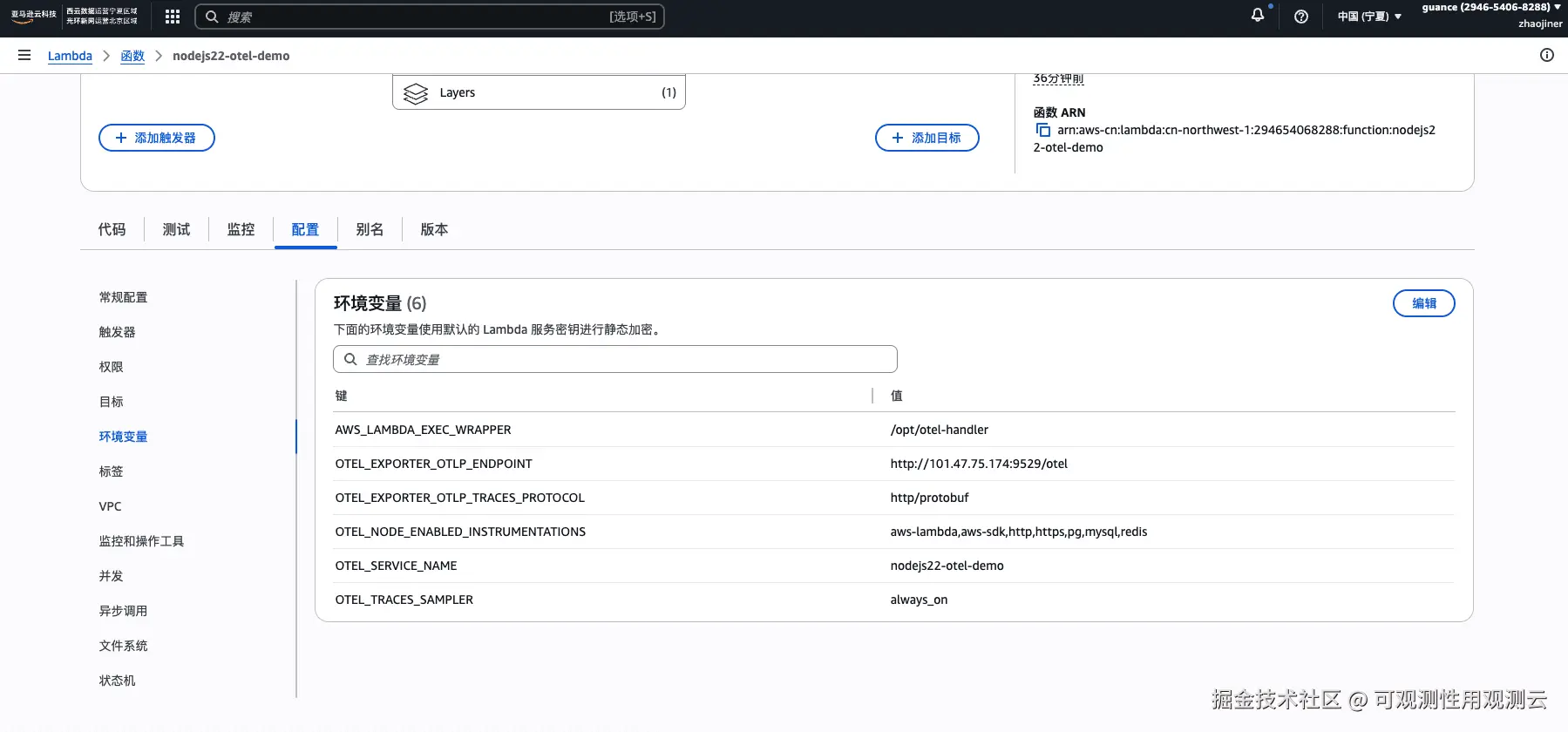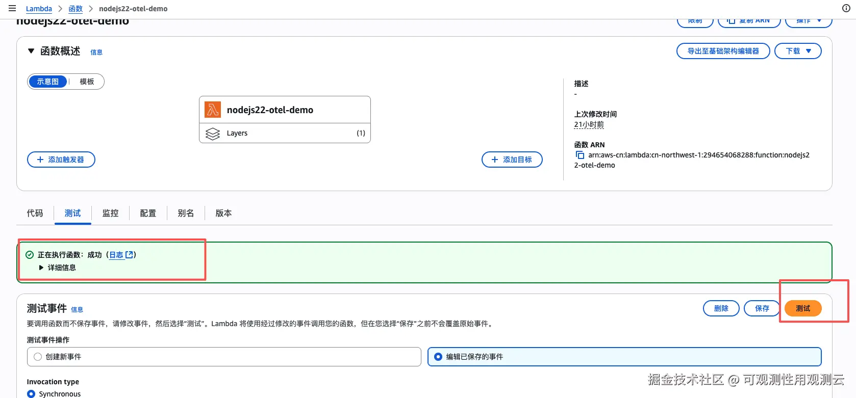构建官方的 Layer 做导出器,通过 Layer 集成,无侵入式地自动捕获 Lambda 函数执行的链路数据可以自动采集 Lambda 函数的链路数据,将采集的数据转换为 OpenTelemetry(OTel)标准格式,确保与观测后端平台的兼容性。