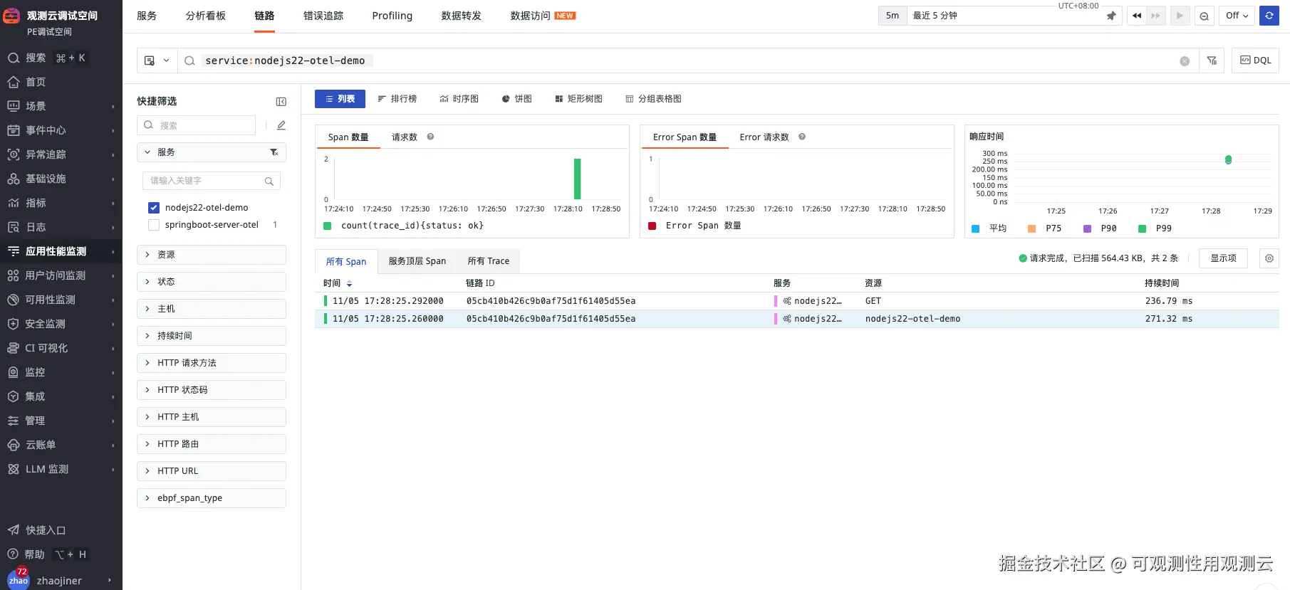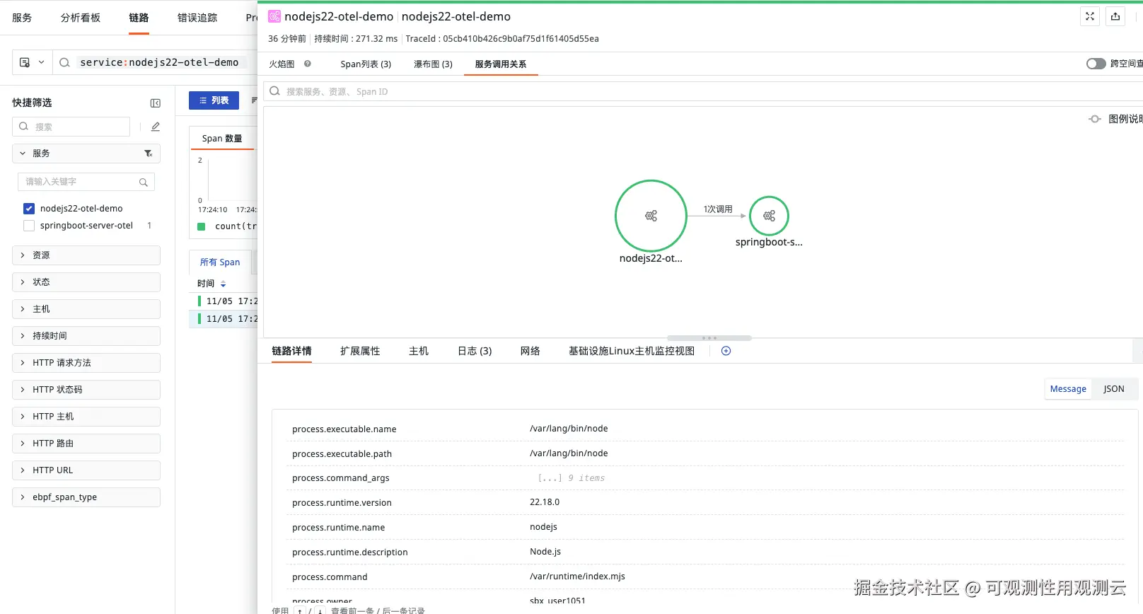 链路上报效果如下: