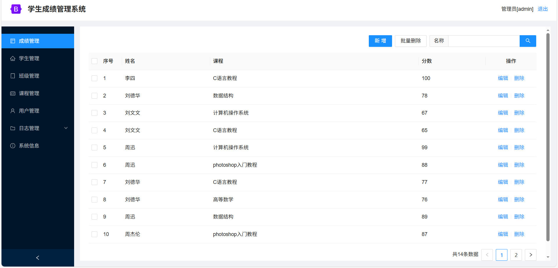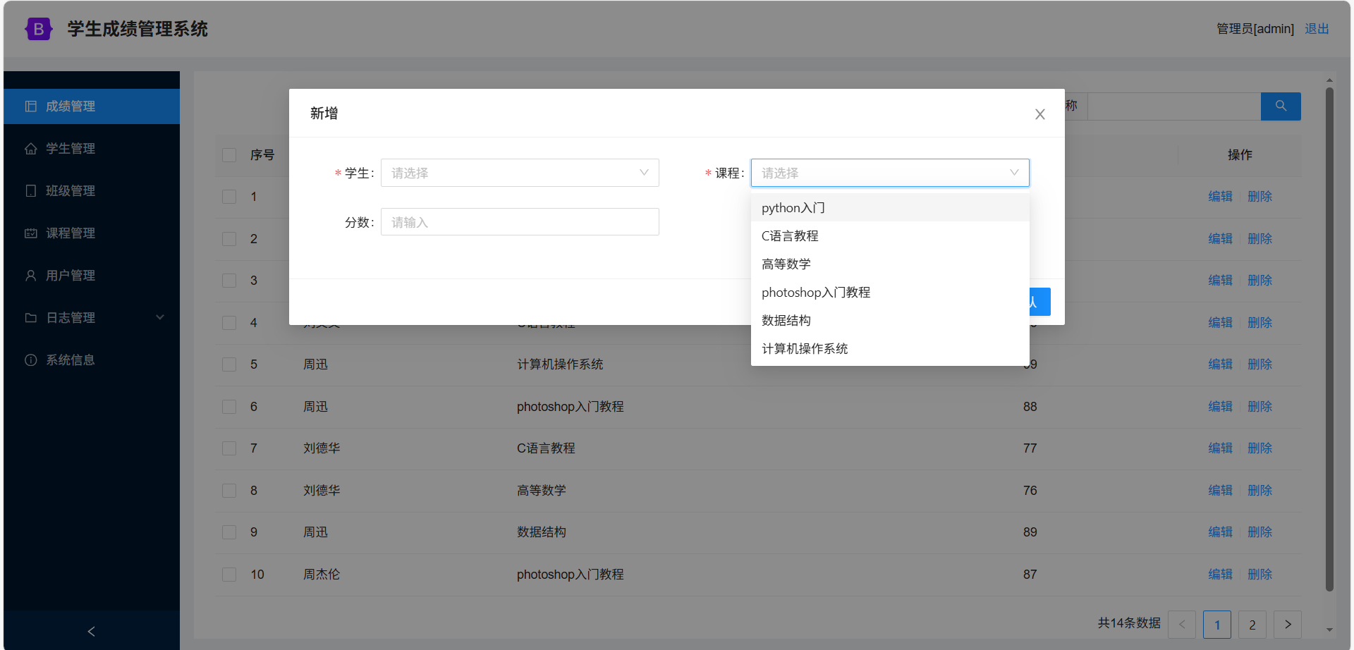 成绩管理:成绩信息的增删改查。