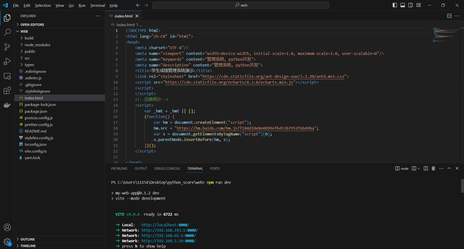 此学生成绩管理系统采用B/S结构,后端采用主流的Python语言进行开发,前端采用主流的Vue.js进行开发,数据库mysql,前后端分离。
