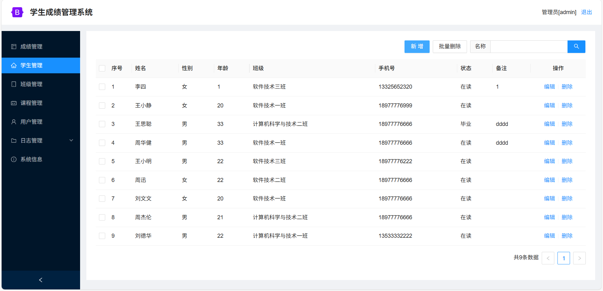 班级管理:班级信息的增删改查。