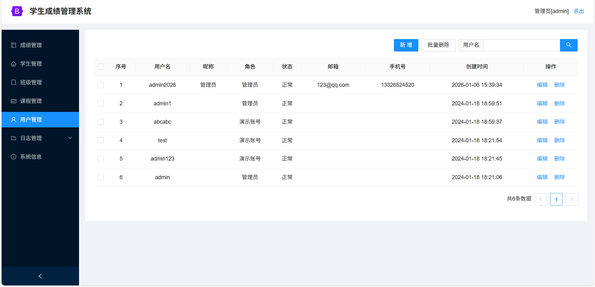 用户管理:管理和浏览网站的用户信息,可以新增、编辑和删除用户。