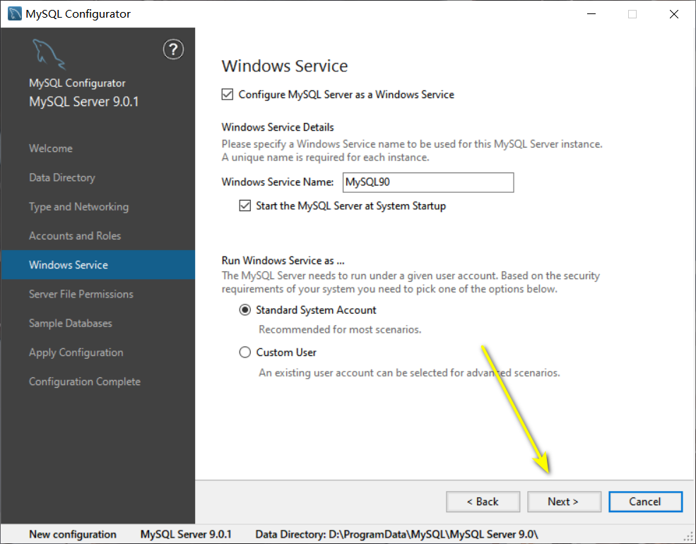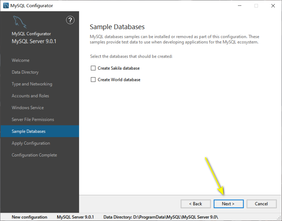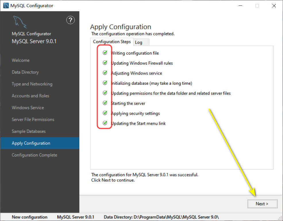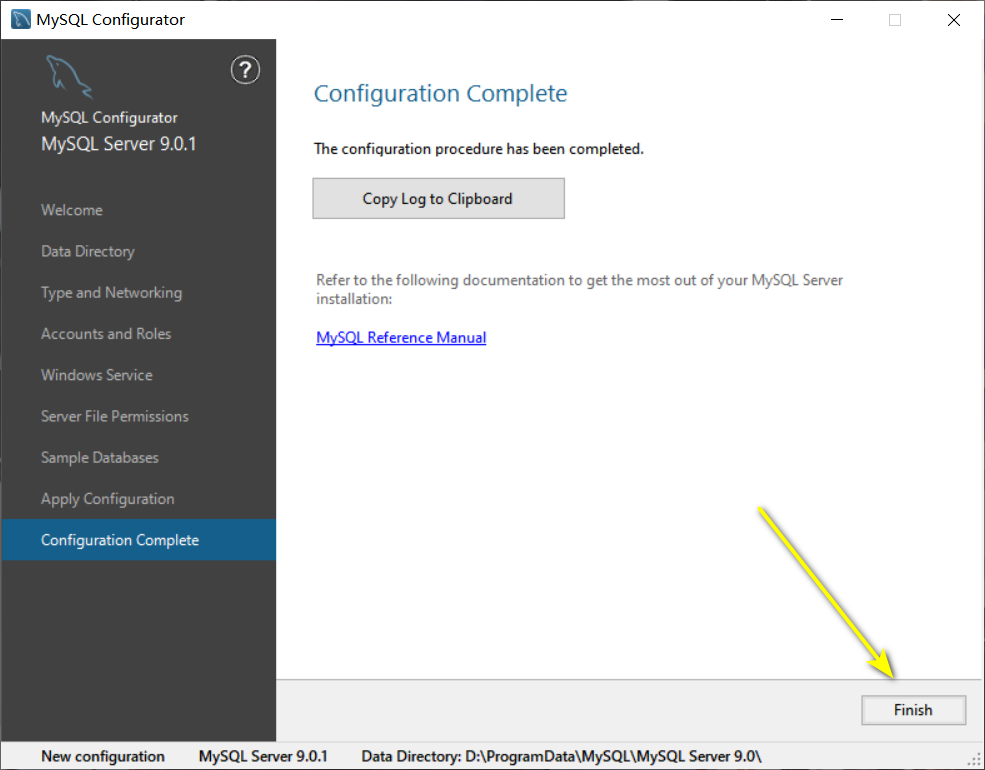 22输入设置的密码,按下键盘上的【Enter】回车键,得到以下信息,则MySQL 9.0安装成功