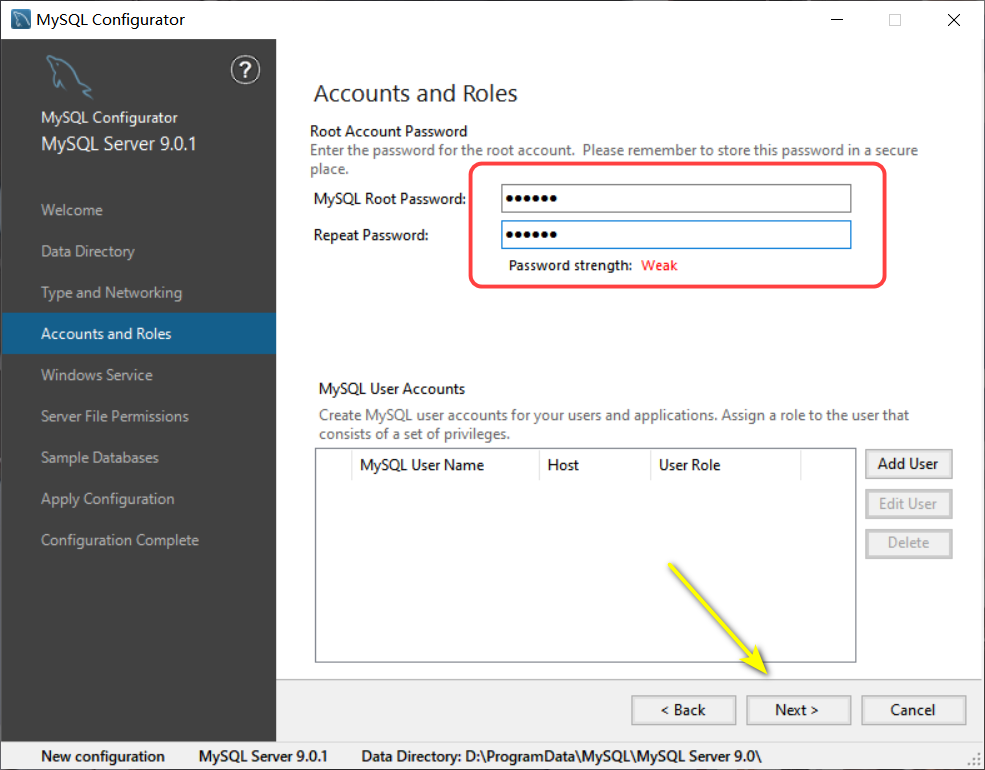 14输入2个相同的密码,要记住,点击Next
