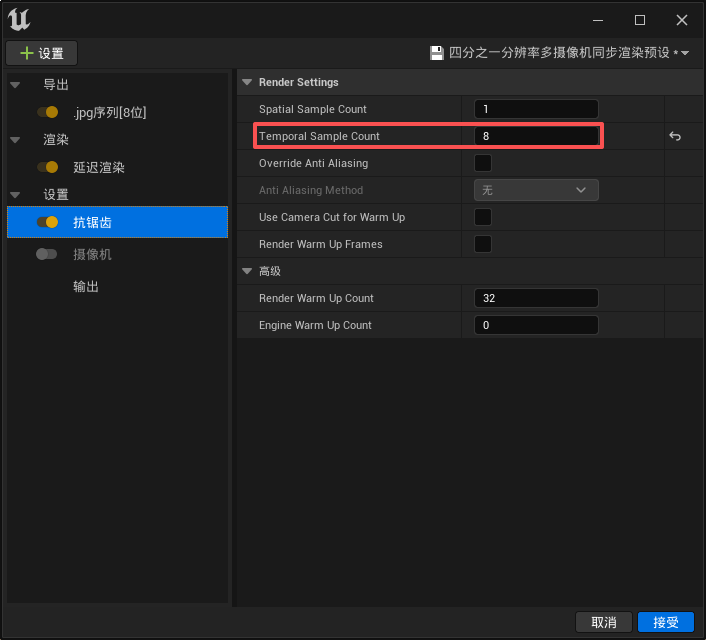UE5 MRQ渲染:解决采样不够造成的角色残影问题