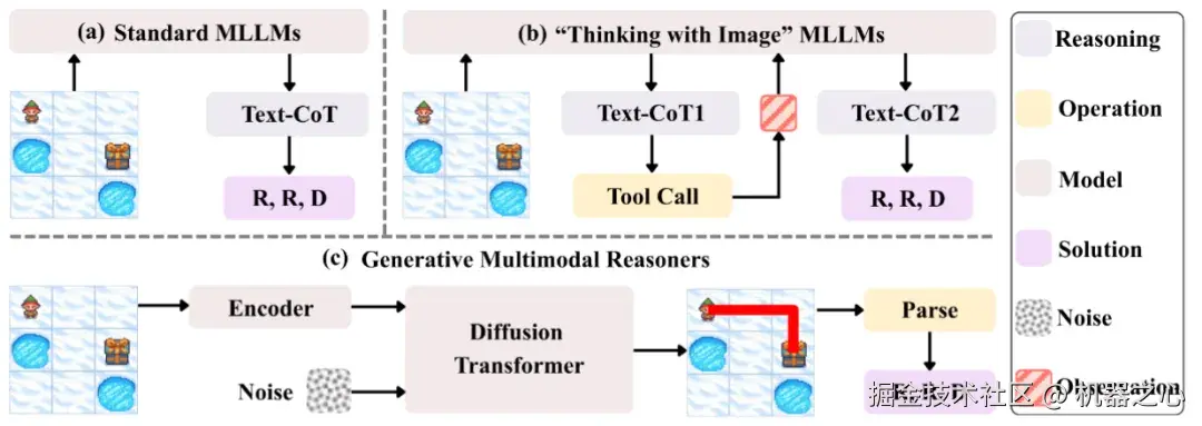 在多模态大模型(MLLMs)领域,思维链(CoT)一直被视为提升推理能力的核心技术。然而,面对复杂的长程、视觉中心任务,这种基于文本生成的推理方式正面临瓶颈:文本难以精确追踪视觉信息的变化。形象地说,模型不知道自己想到哪一步了,对应图像是什么状态。
