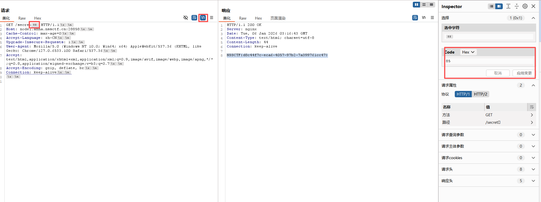 带上路径/secret访问,bp抓包拦截。改成a0也行