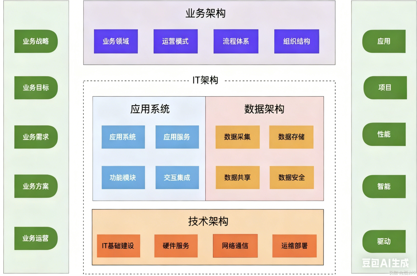该排序贴合企业数字化转型的完整流程,从 "为什么做"(业务目标)到 "做什么"(产品 / 应用),再到 "怎么做"(技术 / 数据),最后到 "如何落地"(项目),是最通用的架构设计顺序: