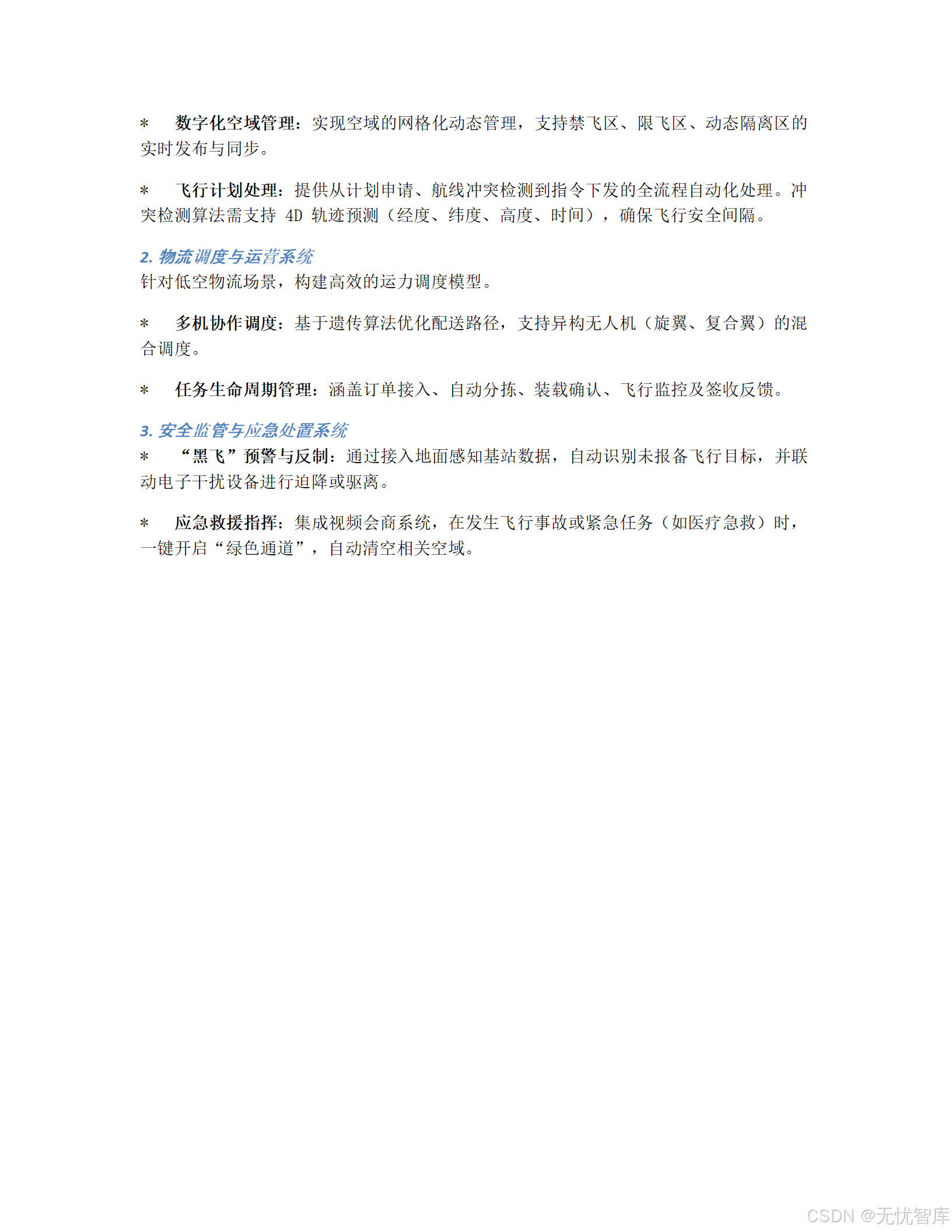 - 静态空域划设:明确划定禁飞区、限飞区,并通过电子围栏技术实现自动预警。