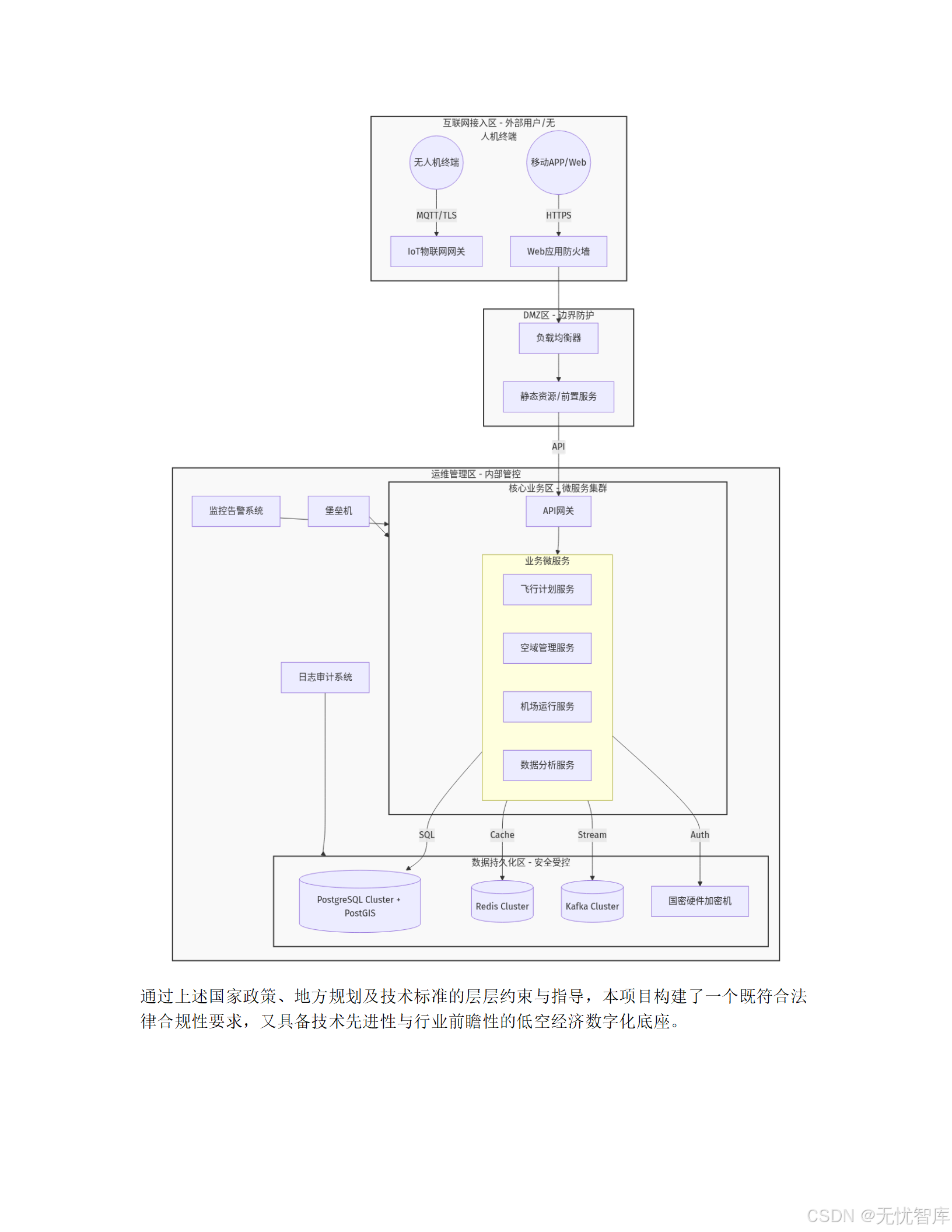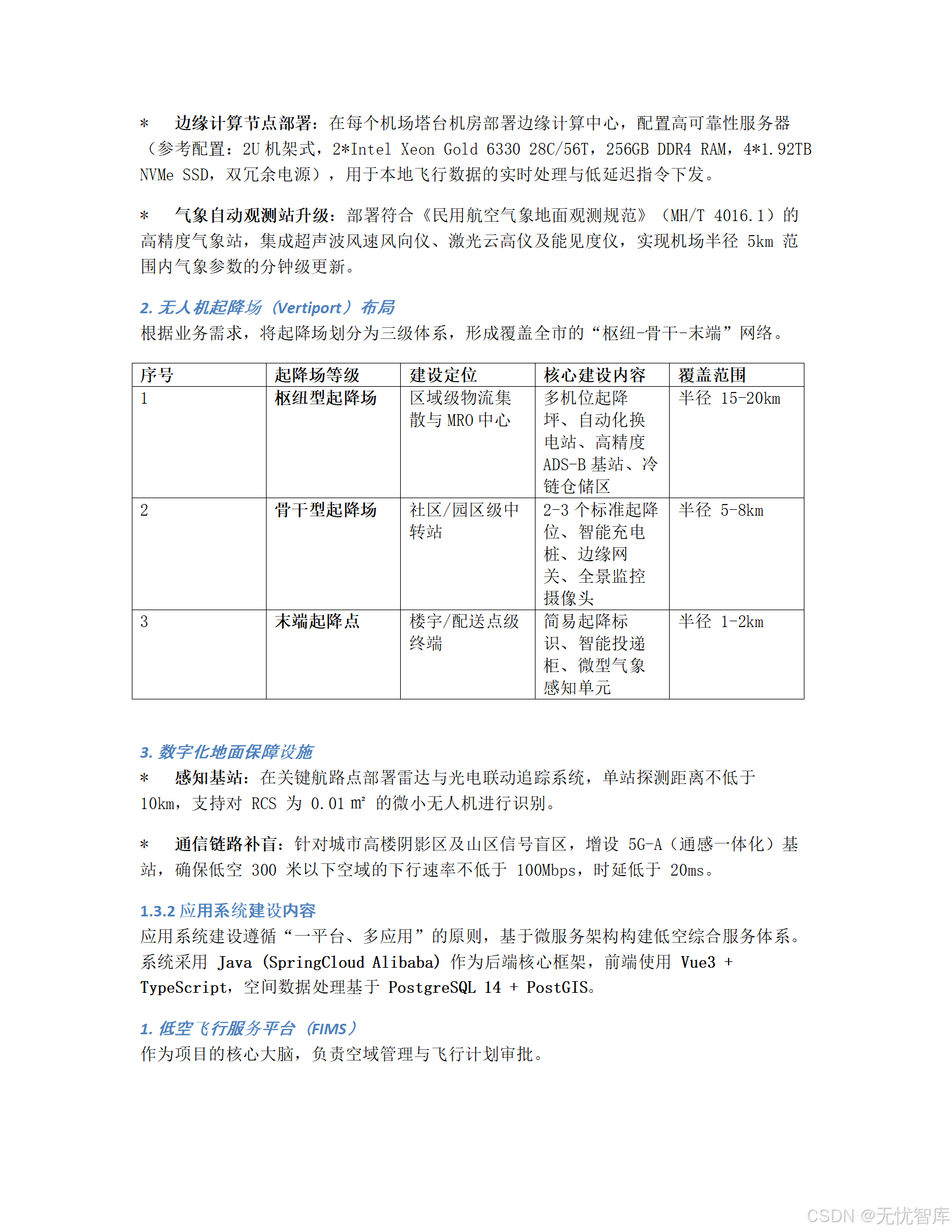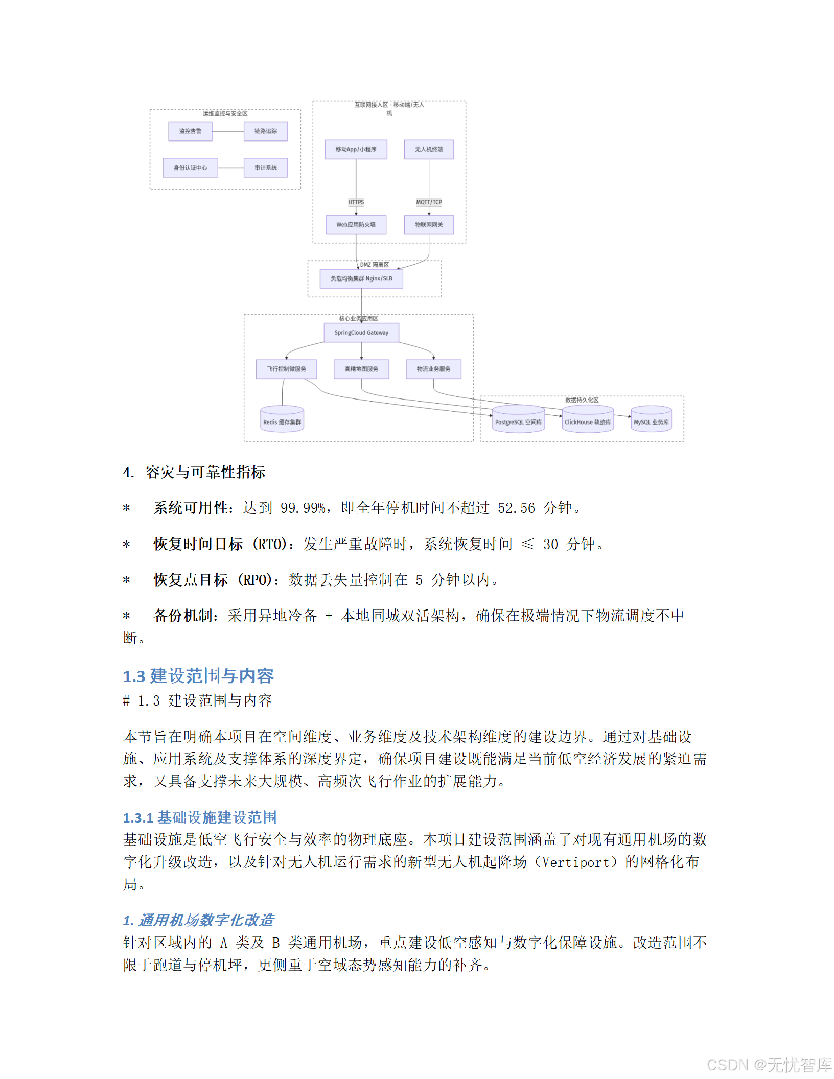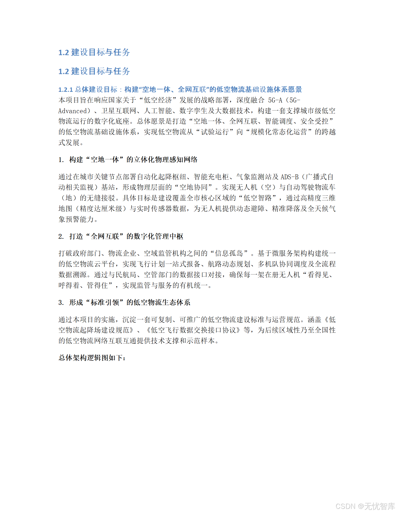 摘要:本文深度拆解一份极具前瞻性的政府信息化项目方案------《某低空经济试验区"十五五"通用航空机场与无人机物流网络初步设计方案》。该方案不仅规划了物理世界的机场与航线,更核心的是构建了一个覆盖"监、管、服、用"全链条的数字化智能平台。我们将从顶层设计、技术架构、安全体系、实施路径和运营机制五大维度,全面剖析其如何通过"数智化"手段破解低空经济发展中的监管难题,并为全国同类项目提供可复制、可推广的范式。全文超8000字,干货满满,建议收藏。
