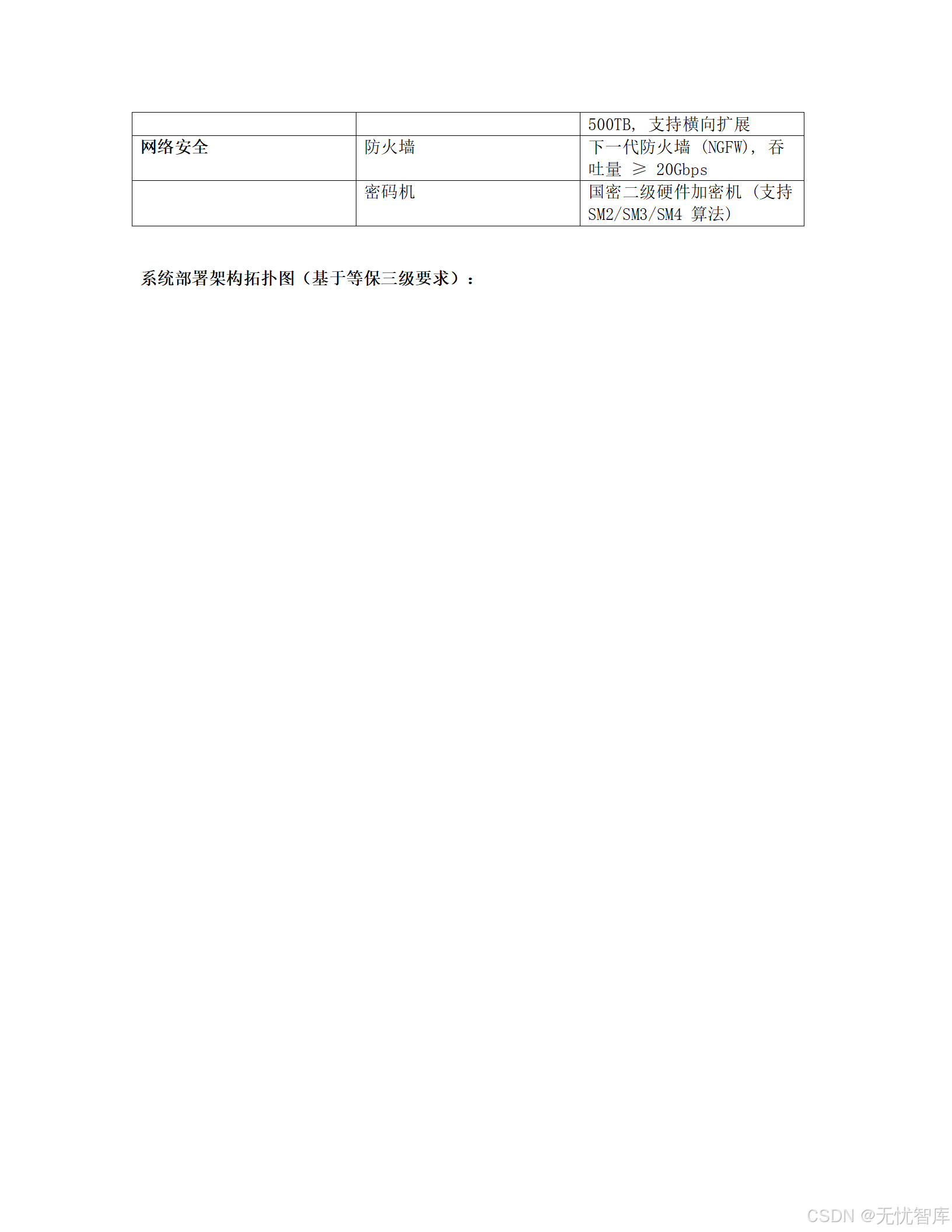 方案明确要求在项目后期通过《GB/T 22239-2019 信息安全技术 网络安全等级保护基本要求 》的三级测评,并完成国密算法改造。等保三级是面向重要信息系统的基本安全要求,是政务云项目的"入场券"。