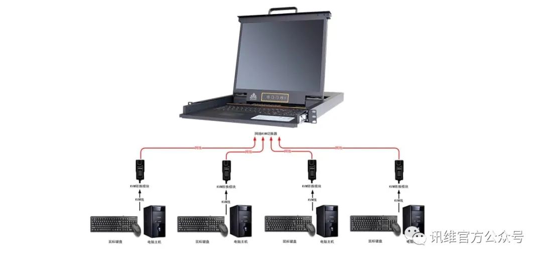KVM(多计算机切换器)作为硬件底层管控的核心设备,可实现通过一套键盘(Keyboard)、显示器(Video)、鼠标(Mouse)组成的控制端,对多台服务器进行集中控制。管理员仅需在KVM控制端口接入显示与输入设备,即可在其控制界面快速切换至任意一台服务器,实现实时查看与操作。高端KVM设备更支持对上千台服务器的集中访问与管理,且设备间采用电子式切换技术,彻底规避热插拔设备可能引发的服务器死机、硬件故障等不可预知问题,保障运维操作的安全性。