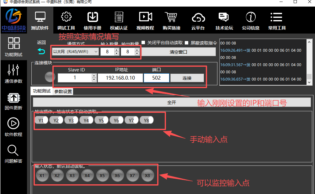 1. 设备默认IP:192.168.0.7,端口号:8234. 先输入默认IP和端口号,连接。