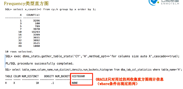 oracle 只对用过的列收集直方图统计信息,(也就是在where条件中出现过的列)