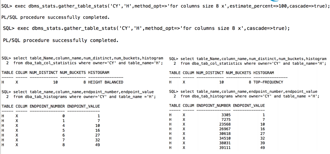 • Height-balanced---如果使用了AUTO_SAMPLE_SIZE将不再创建这个类型的直方图