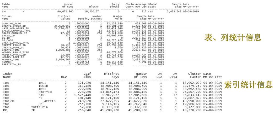 | 可用于索引、表、列、数据字典统计信息 | 可用于索引、表、列、数据字典统计信息 |
