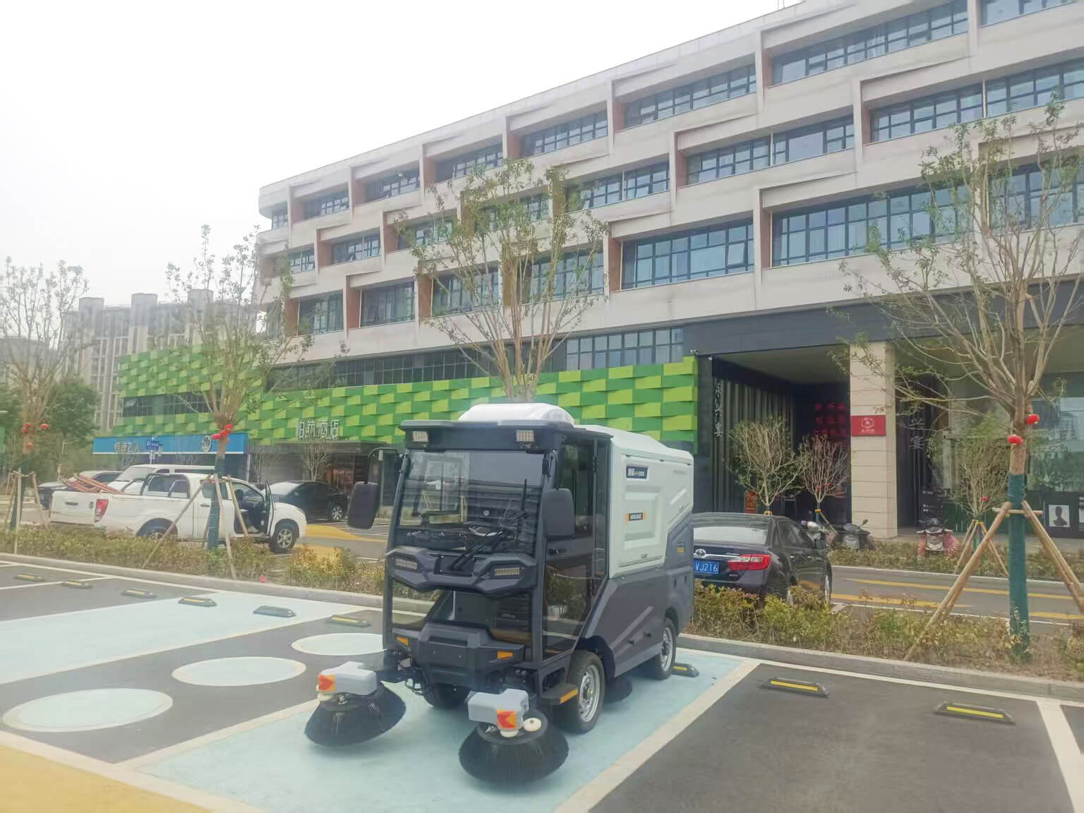 在操作便捷性与安全性方面,该设备同样表现出色。设备采用全封闭驾驶舱设计,标配冷暖两用空调,能够为操作人员提供舒适的作业环境,有效规避了传统人工清扫面临的风吹日晒、粉尘侵害等问题。驾驶舱内配备高清显示屏与便捷操作按钮,各项作业参数一目了然,操作人员经过简单培训即可熟练掌握。同时,设备还搭载了工作警示灯、安全导向灯、倒车影像等多项安全配置,在作业过程中能够实时提醒周边车辆与行人,大幅降低作业安全风险。此外,设备采用电动驱动模式,相较于传统燃油清扫设备,具有噪音低、零排放、能耗低等优势,作业过程中不会对厂区环境造成二次污染,完美契合靖江庆润固废的绿色环保发展理念。
