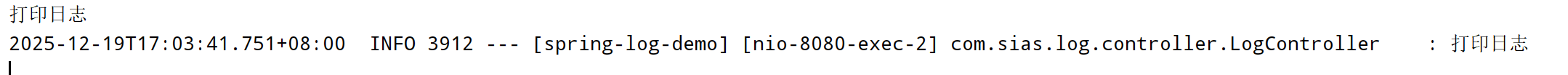 使用info方法打印出来的日志,格式就是Spring Boot自带的格式。