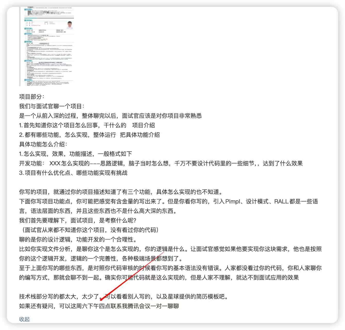 (5)星球提问简历修改,提供意见的同时,还会给安排一对一腾讯会议辅导